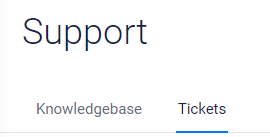 이 페이지에서 위쪽에 있는 Support 글씨 아래에 있는 Knowledgebase 옆에 있는 Tickets 버튼을 클릭해줍니다.
